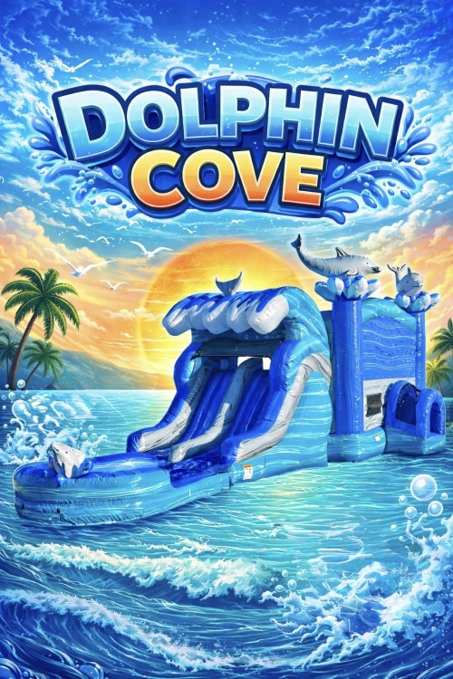 The Dolphin Cove Combo is perfect for backyard birthday parties, school events, church festivals, neighborhood gatherings, and corporate family days. Its bright colors and ocean theme make it a fun centerpiece that attracts attention and keeps kids active and entertained for hours.